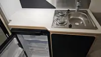 Fonctionnelle avec ou sans moto, elle dispose d’un plancher relevable avec rampe, de 2 configurations de couchage pour vous permettre de dormir ou non avec votre moto.